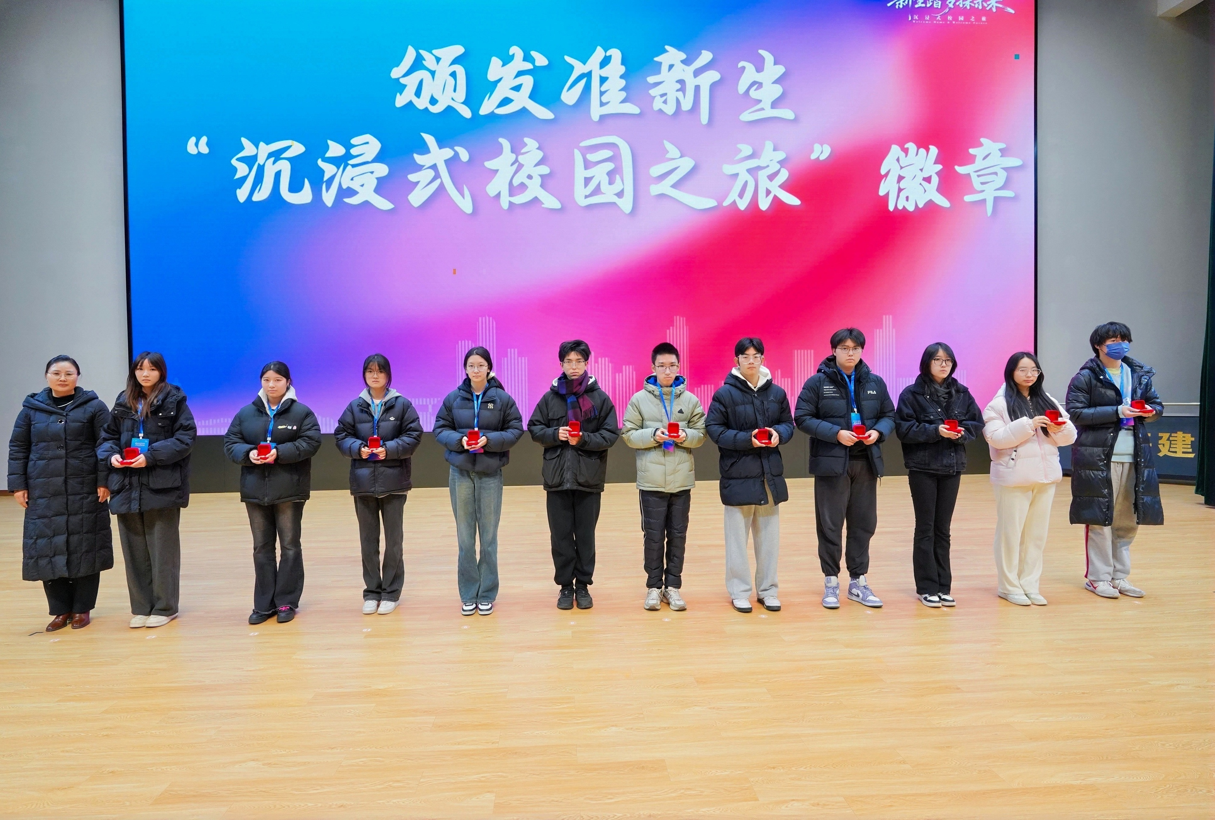 为让准新生提前感受建桥温度,学校特别颁发沉浸式校园之旅徽章。校领导及各二级学院党委书记分批为新生代表颁发徽章,寓意建桥精神的接力与传承。
