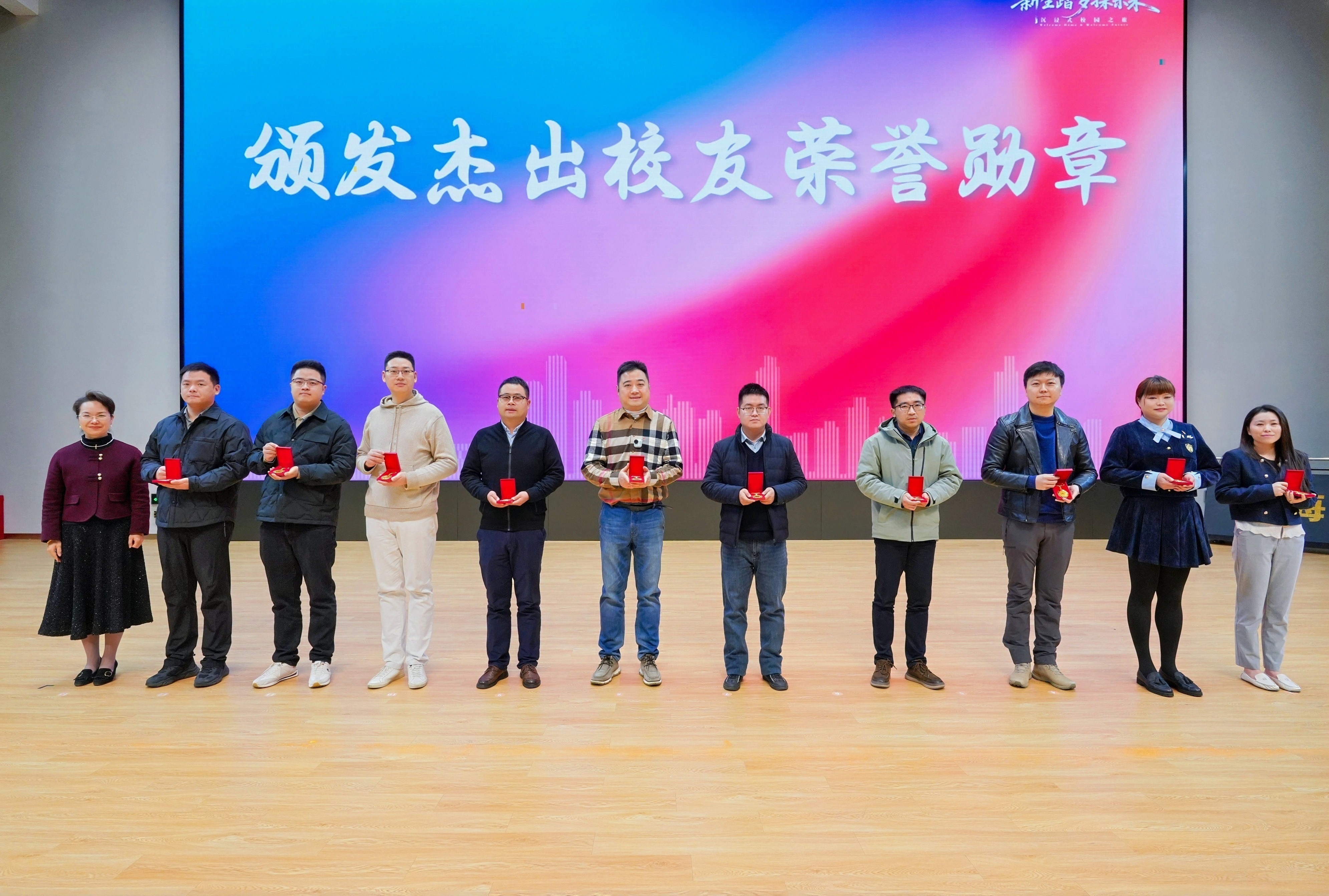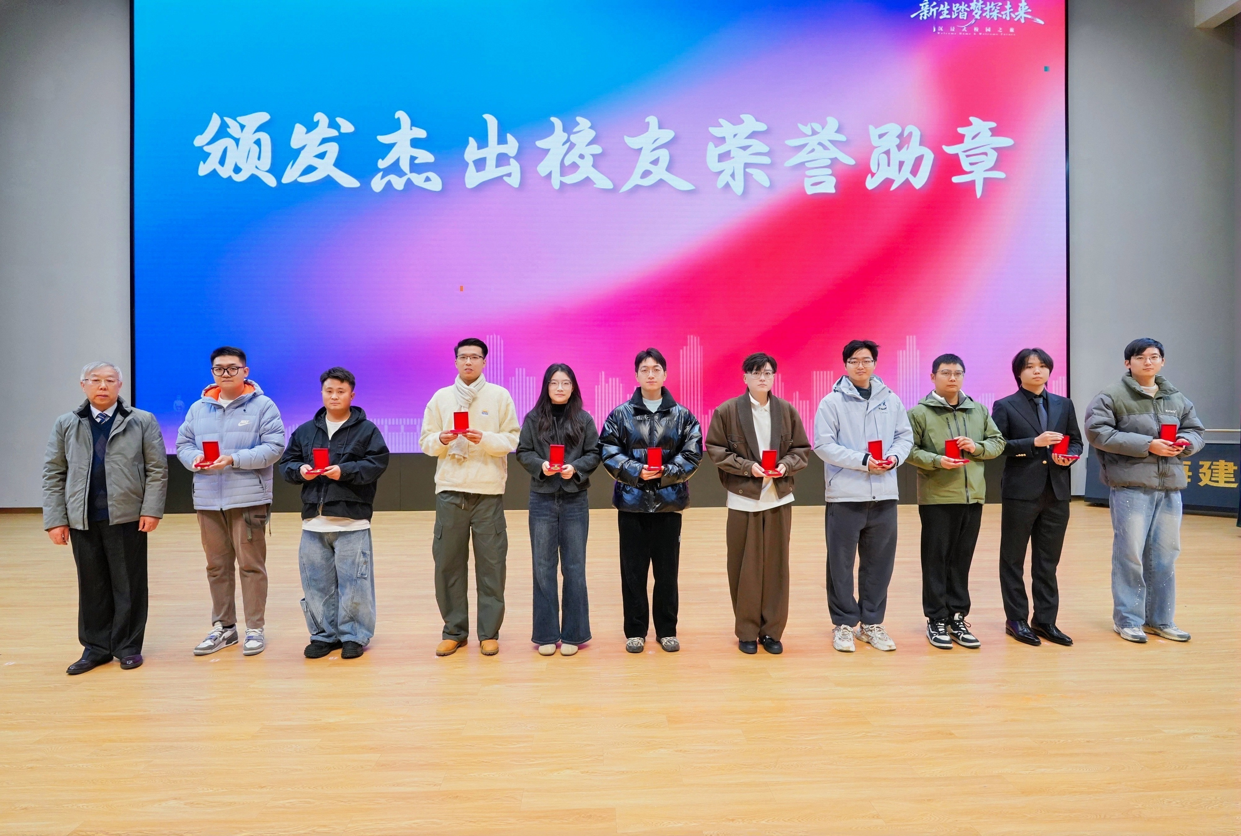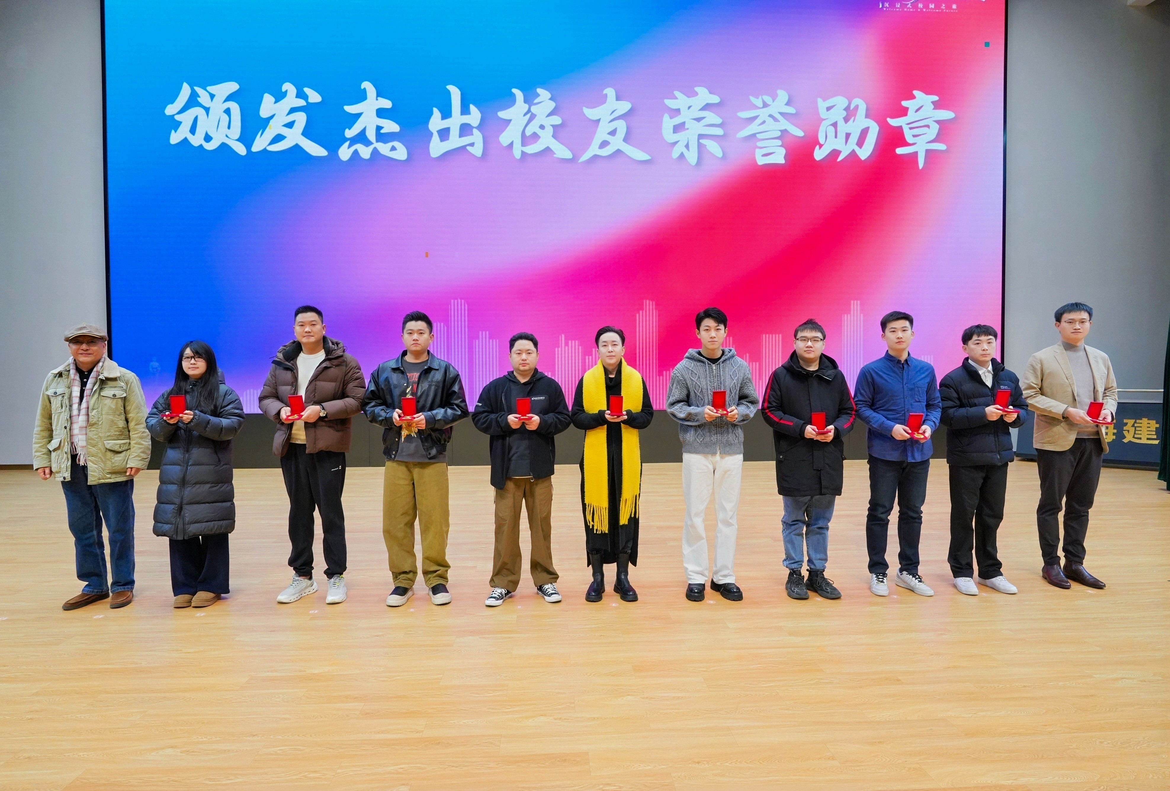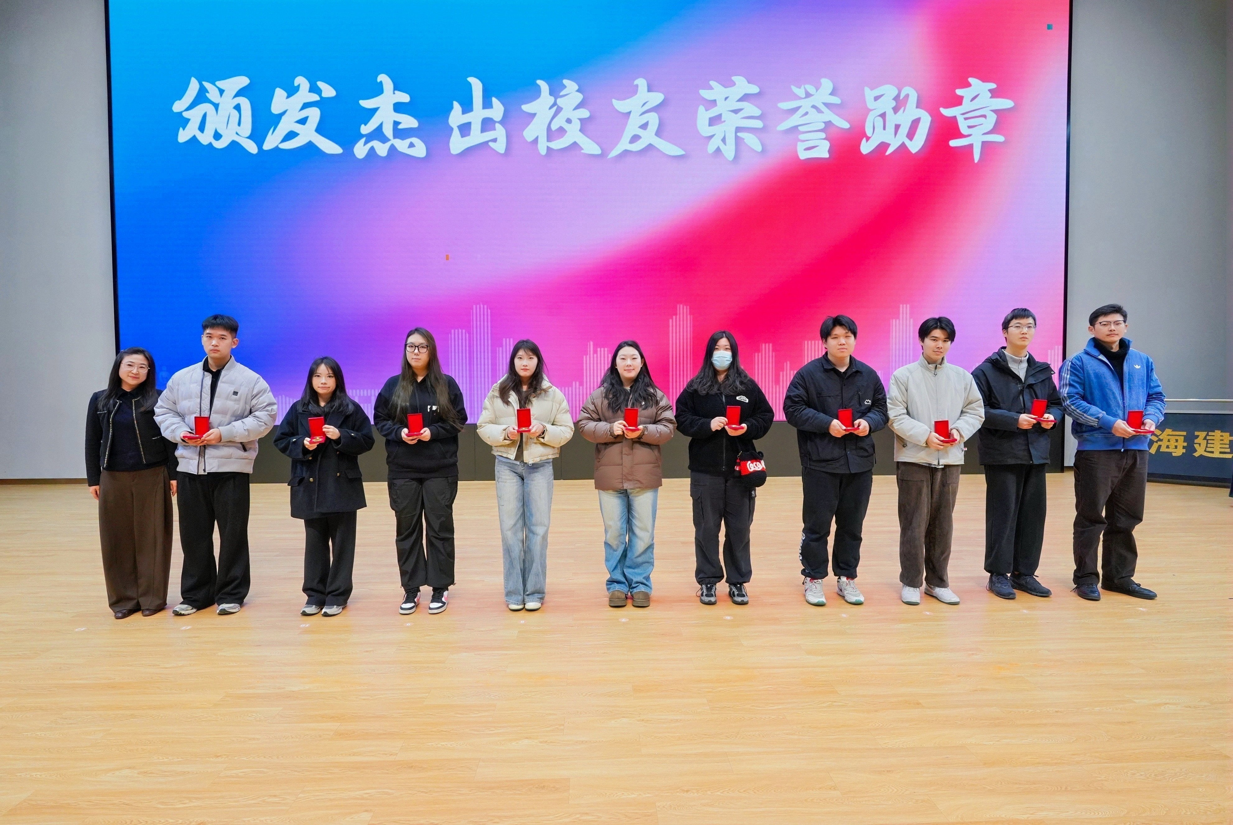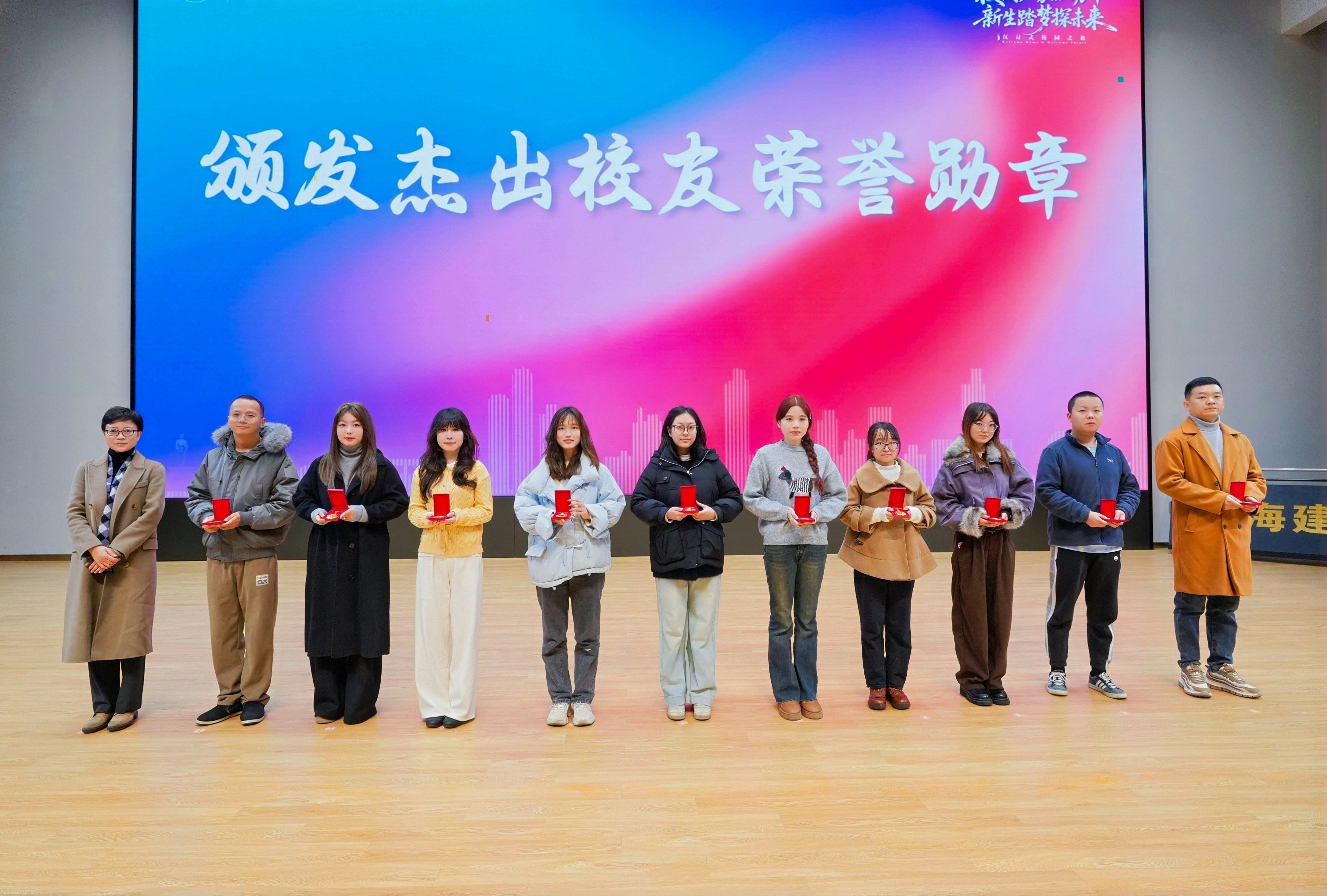 学校还为建校25年来涌现的100位杰出校友代表分批颁发了荣誉勋章,校领导及各二级学院院长分别上台,为校友代表授勋。这些校友在各自领域深耕细作,建功立业,用实际行动让“建桥人”的名字更加闪亮。