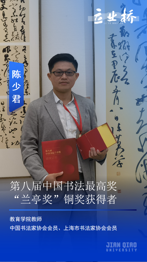 上海建桥学院一间寻常的教室里,总是浮动着淡淡的墨香。纸铺开,笔提起,时光便慢了。执笔引导学生的,是刚斩获第八届中国书法最高奖“兰亭奖”铜奖的教师陈少君。