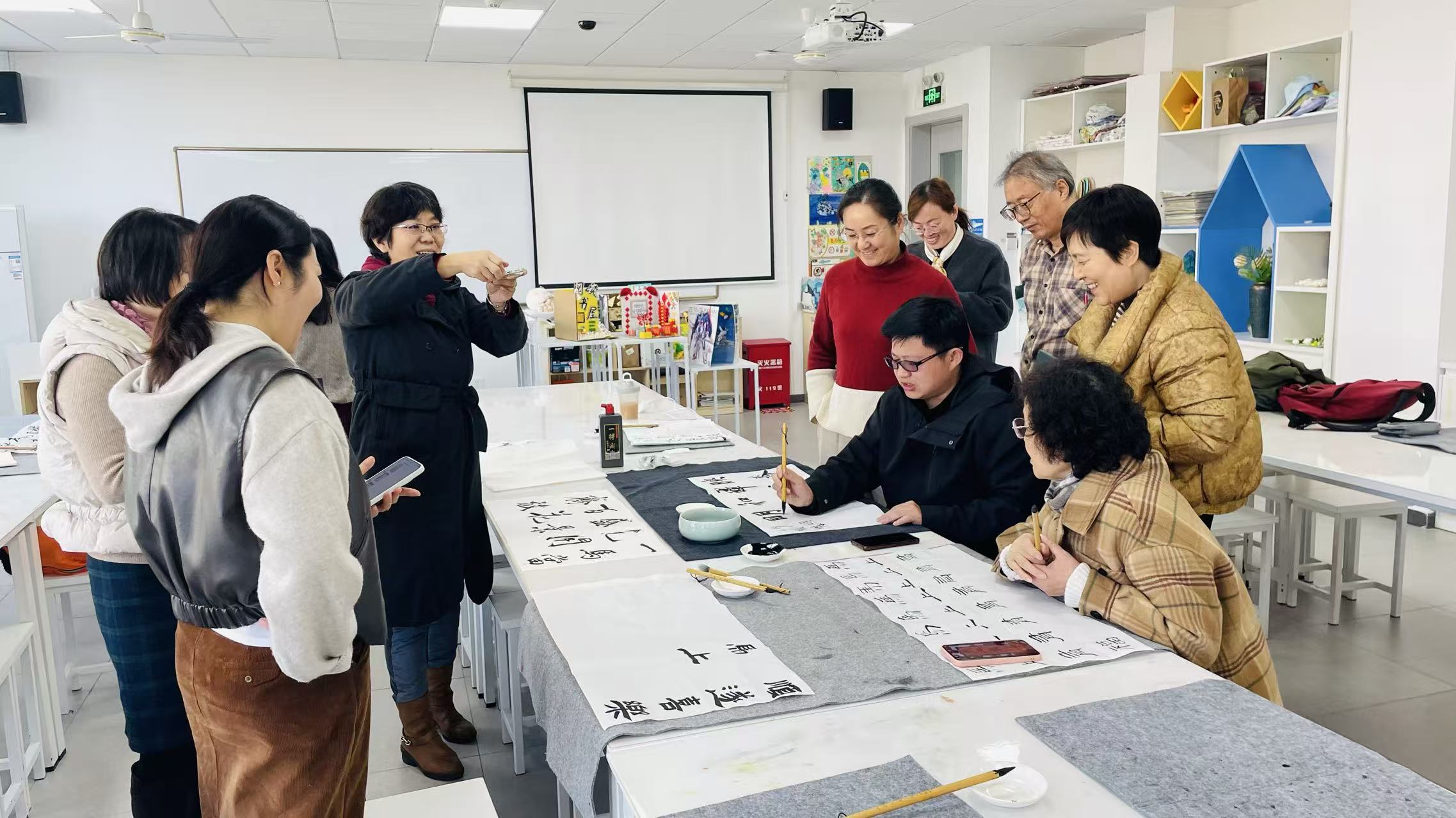 除面向学生的课程外,陈少君老师还利用午休时间开设 “书法午间课堂”,为在校教师提供了一处习书修心,为心灵“充电”的天地。