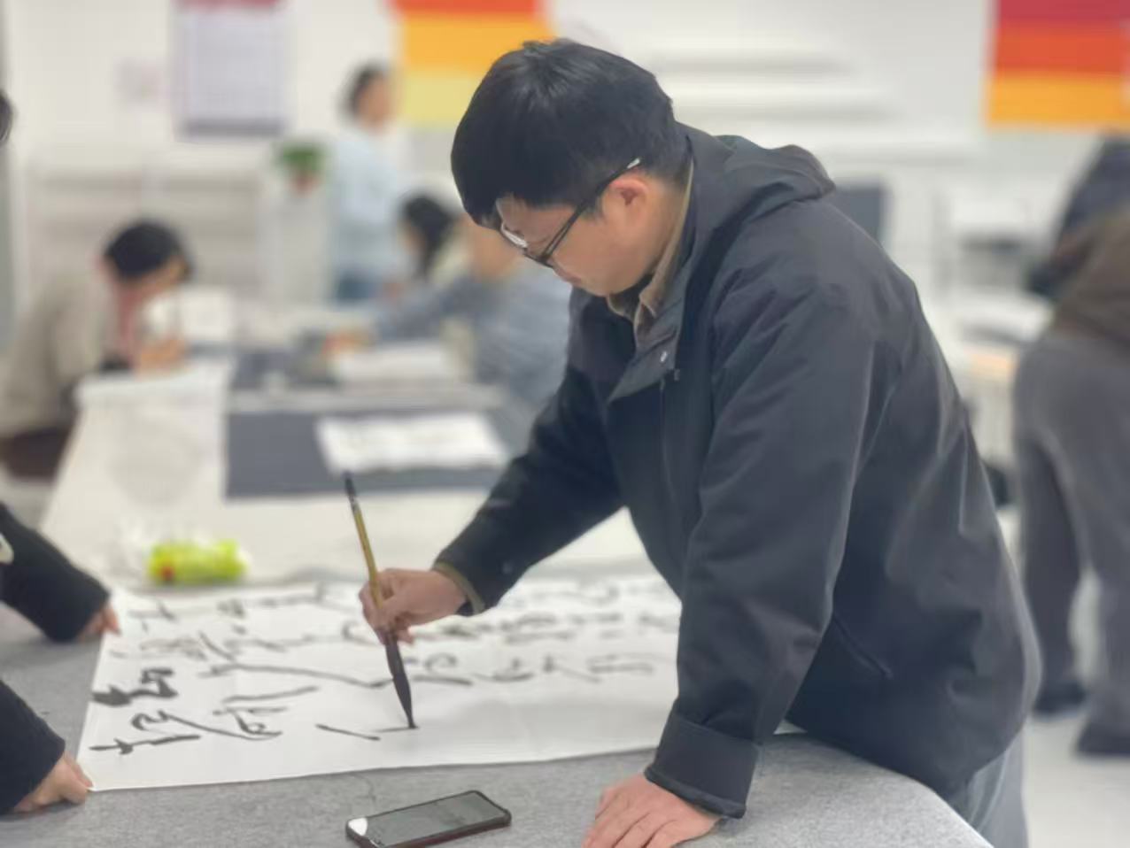 “平时工作繁忙,很难静心提笔。陈老师的午间课堂,成了我们老师的‘精神充电站’。”艺术设计学院王妍老师感慨,“陈老师从最实用的行书教起,深入浅出,零基础也能跟上。更重要的是,在一笔一画中,我们得以暂离繁忙,专注当下。让我们深深感到——书法不只是的写字,更是一种生命状态的表达。不少学员在交流中说,中午习字一小时,下午工作效率反而更高,心也更静了。陈老师传递给我们的,是一份‘慢下来’的生活智慧,对教学与个人修养皆是滋养。”