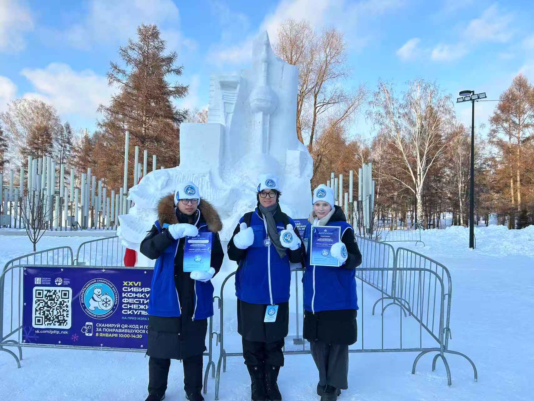 近日,在俄罗斯新西伯利亚举行的西伯利亚雪雕节上,来自上海建桥学院外语与国际教育学院视觉传达系全英文专业的俄罗斯籍学生 Sofiya,带领来自海洋大学及 BTU Academy 的同学组成国际创作团队,在这一汇聚全球创意与技艺的冬季艺术盛事中荣获 特别奖项,为我院国际化教育成果再添精彩篇章。