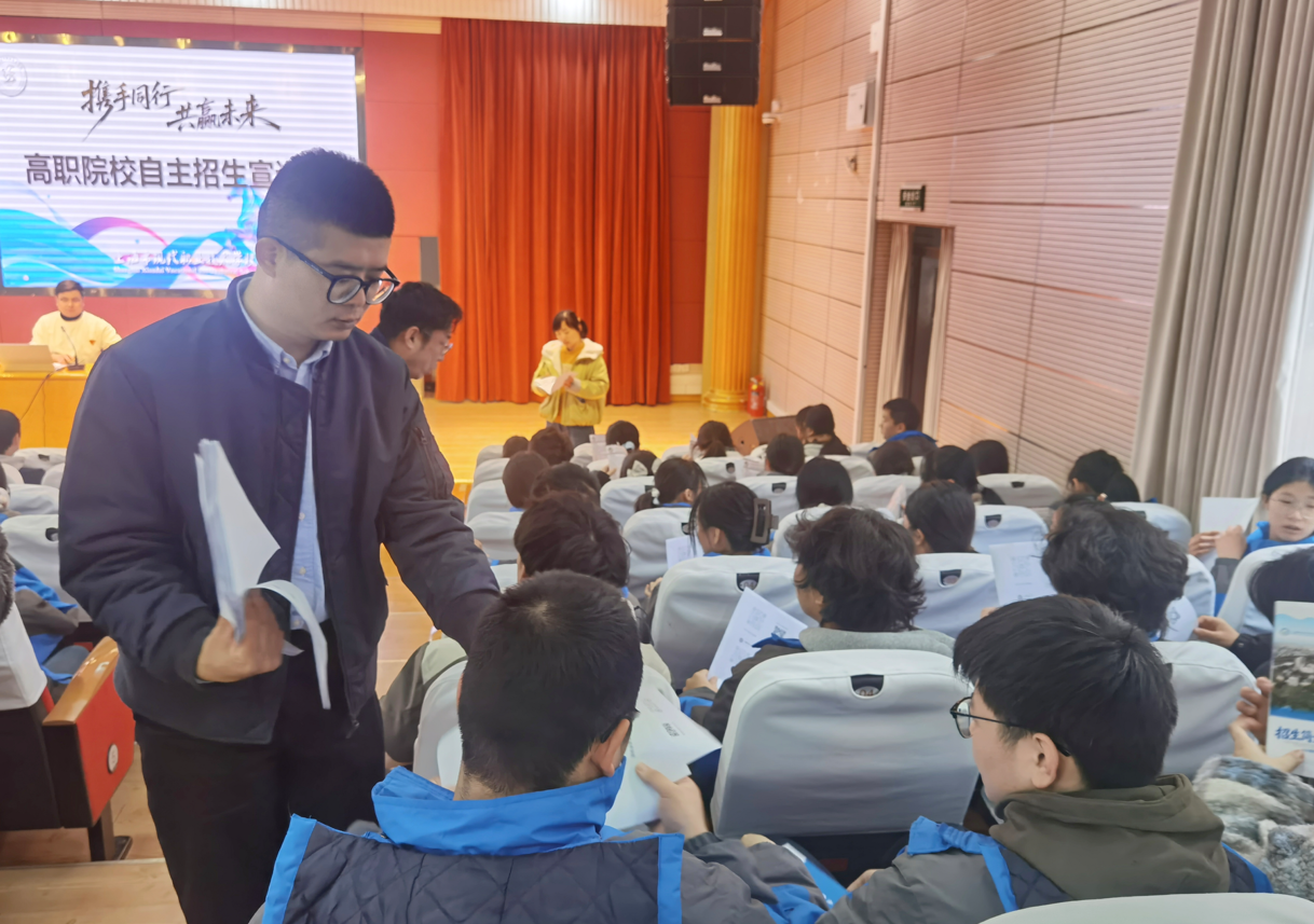 宣讲活动正式开始前,宣讲团队提前开展预热工作,向现场学子发放调查问卷和招生宣传册,耐心倾听同学们的升学诉求。团队成员结合当前职业教育发展趋势,鼓励同学们珍惜自主招生这一重要升学契机,立足自身技能特长,科学筛选专业、明确发展方向,努力实现学业提升与职业成长的双重突破。同学们主动驻足咨询,积极交流自身困惑,宣讲团队逐一耐心回应,既有效解决了有意向报考建桥学院学子的疑问,也成功吸引了更多同学对学校的关注,为后续宣讲活动的顺利开展奠定了良好基础。