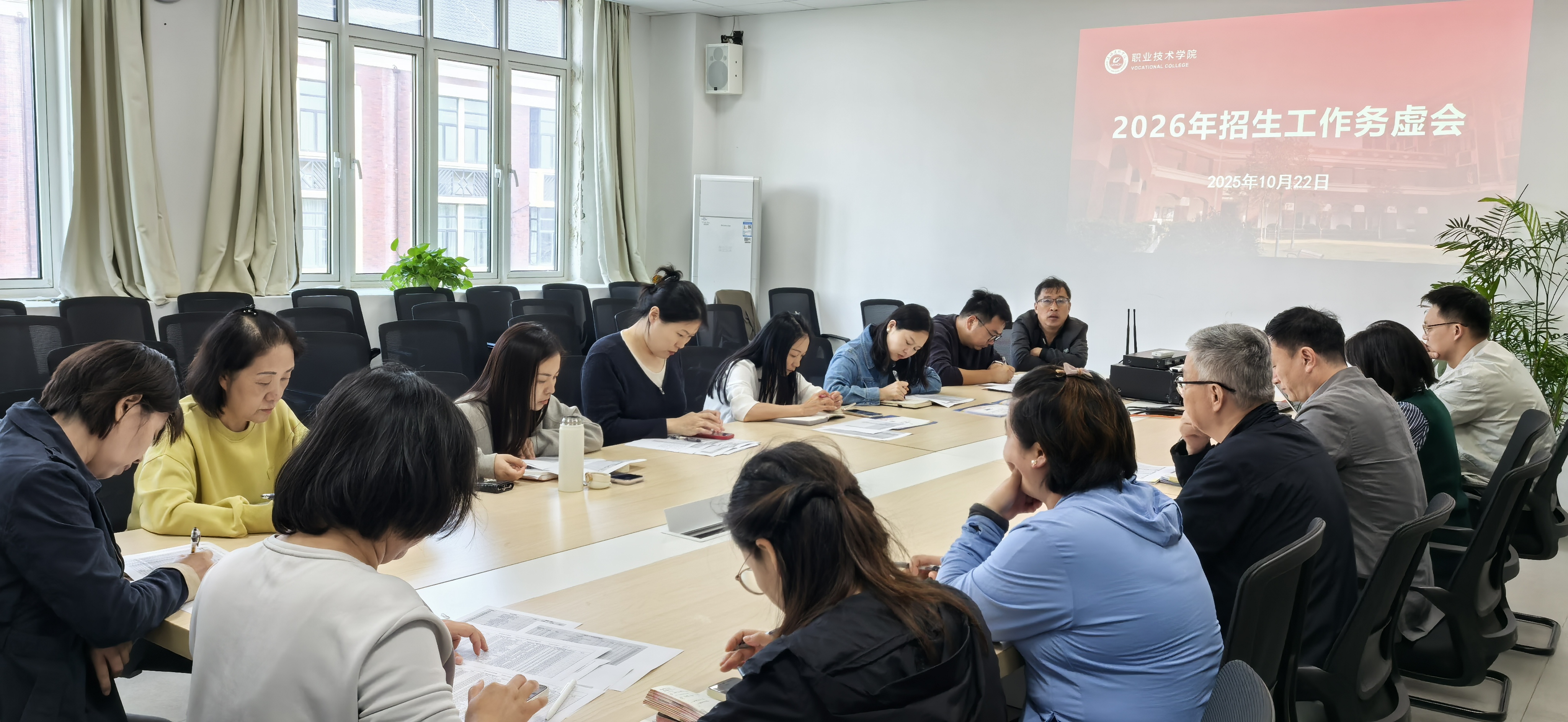 10月22日,职业技术学院召开2026年招生工作务虚会,系统谋划招生工作,优化完善招录策略。会议专题研究招生方案制定、专业品牌建设、生源渠道拓展及走访工作部署等工作议题。学院领导班子成员、院长助理及各系室主任出席会议,会议由谷伟院长主持。