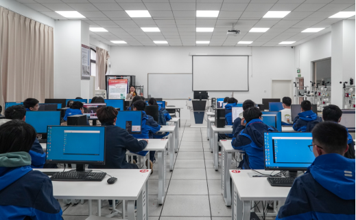 为探索中本贯通一体化的人才培养模式,上海建桥学院与上海信息技术学校于11月18日联合举办了物联网工程专业中本贯通交流参观活动。这场以贯通、融合、创新为主题的交流活动,不仅是两校中本贯通培养的阶段性成果展示,更是对未来7年一体化育人路径的深入探索。上海信息技术学校系主任林丹丹及钱雷、杜春立、向黎希、梁富伟老师,信息技术学院副院长矫桂娥、物联网工程系主任王磊、副系主任范培英、朱玉萍及高健老师参加此次活动。