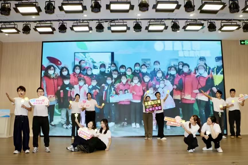 12月5日,在第40个国际志愿者日到来之际,“聚力暖江浦志愿新‘锋’尚”2025年江浦路街道“12·5国际志愿者日”主题活动圆满举行。在这场区域志愿文化盛会中,上海建桥学院网络与新媒体专业学子深度践行应用型人才培养模式,以青年志愿者与创演者的双重身份,将专业实践课堂延伸到社区舞台。由同学们自编自导自演的音乐剧《文明建设你和我》作为压轴节目登场,这不仅是才艺的展示,更是新媒体专业实践教学成果的一次生动汇报,用青春的视角与专业技能,为志愿精神注入时代活力。
