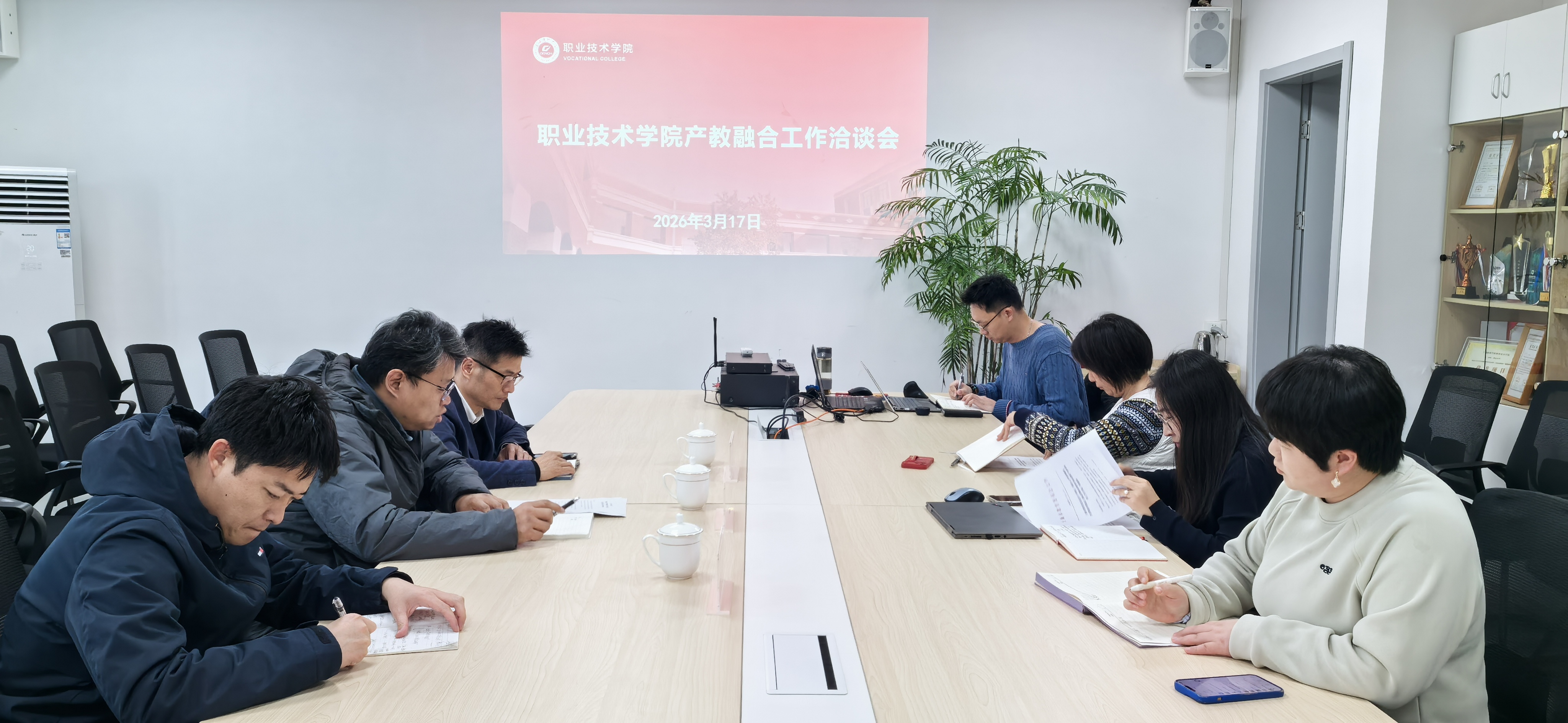 317日,职业技术学院召开产教融合工作洽谈会。会议聚焦产教融合试点校申报与校企协同育人核心议题,系统梳理了当前项目资源与推进路径,为深化产教融合、助力校院两级高质量发展凝聚共识、明确方向。职业技术学院领导班子、产教融合促进中心主任徐磊,质量规划办公室副主任黄河出席会议,产教融合促进中心施楠老师陪同参会,会议由职业技术学院党委书记党松杰主持。