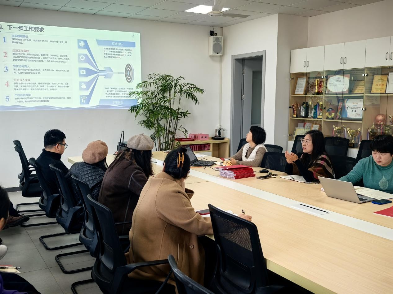 会议旨在进一步明确专业导师工作职责与标准,补齐工作短板,强化责任意识与使命担当,重点围绕专业导师管理办法解读、前期工作复盘、问题查摆与整改、下一阶段工作部署等四项核心内容展开。党松杰同志系统解读了专业导师工作职责、基本要求及管理考核细则,明确考核结果将与教职工年度考核、评奖评优、职称评定直接挂钩。会议全面通报了24级、25级专业导师工作手册完成情况,系统梳理与总结阶段性成果,精准指出当前存在问题并明确整改方向。