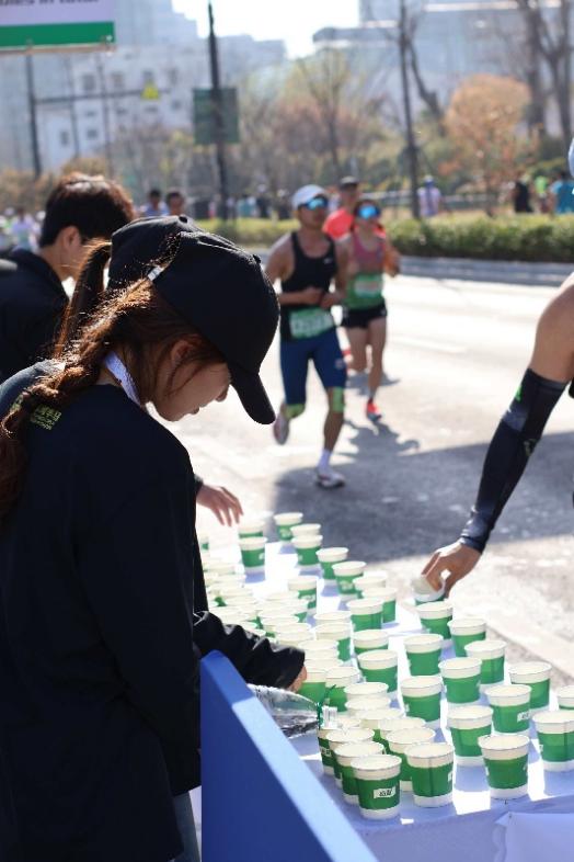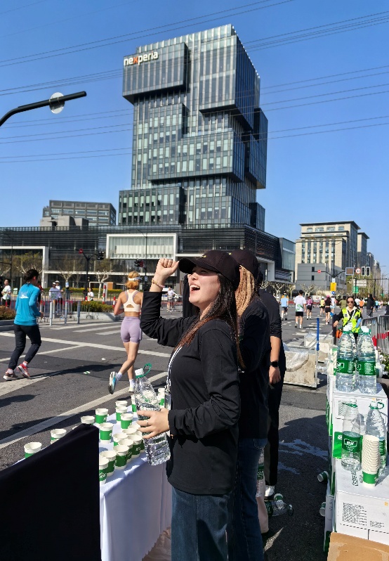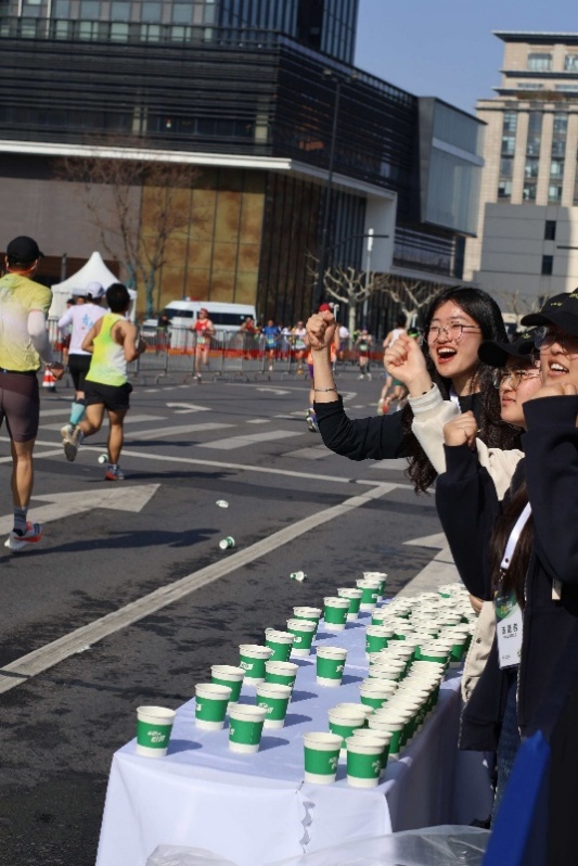 •暖心助威:一边保证每个杯中有水,一边为途经的跑者呐喊助威,用温暖笑容与铿锵口号为选手加油鼓劲。